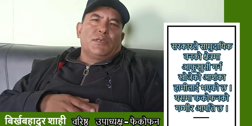 वरिष्ठ उपाध्यक्षज्यू, सरकारले सामुदायिक वन क्षेत्र विभिन्न प्रयोजनका लागि प्रयोग गर्दा अब समूहको साधारणसभा नभै कार्यसमितिबाट सहमति लिए पुग्ने प्रस्ताव राखेर वन नियमावली संशोधन गर्ने तयारी गरेको छ । यसमा फेकोफनको धारणा के हो ?