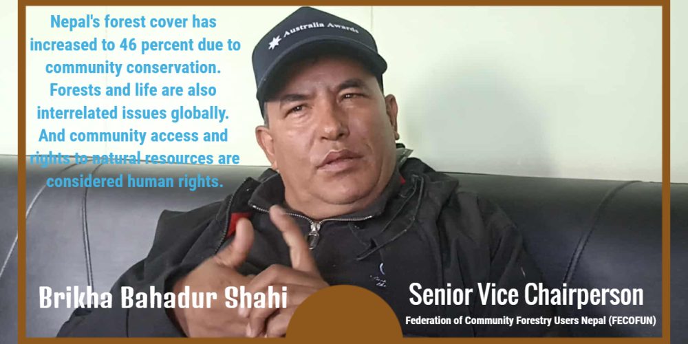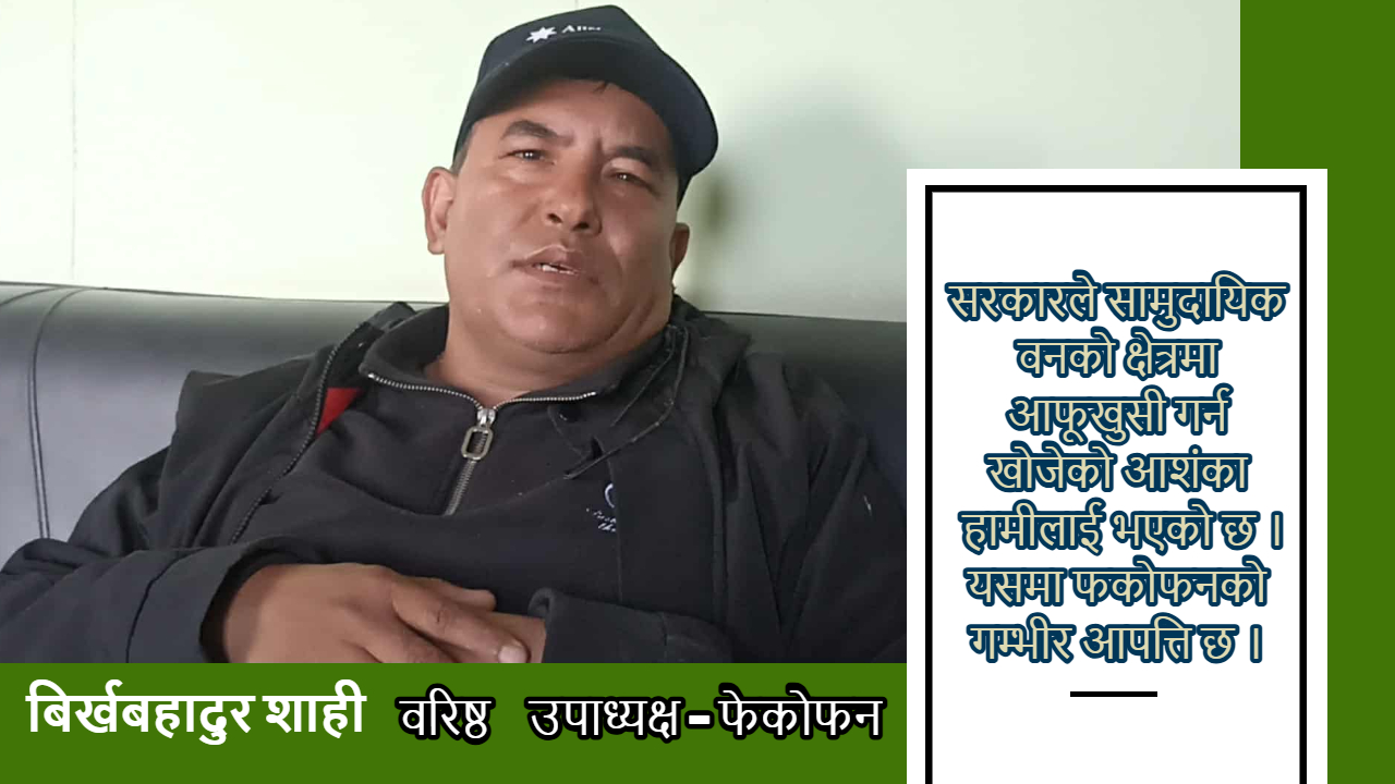 सामुदायिक वन उपभोक्ता महासंघका वरिष्ठ उपाध्यक्ष बिर्खबहादुर शाही प्राकृतिक श्रोत र उपभोक्ता अधिकारका पक्षमा दुई दशकभन्दा लामो समयदेखि सक्रिय हुनुहुन्छ । यसअघि उहाँ फेकोफनको हुम्ला जिल्ला अध्यक्ष, केन्द्रीय सदस्य, सचिव र महासचिव भएर पनि काम गरिसक्नुभएको छ । डेढ करोडभन्दा धेरै उपभोक्ता आवद्द सामुदायिक वन उपभोक्ता महासंघको देशव्यापी अभियान र उपभोक्ताहरुको क्षमता सुदृढीकरण, आर्थिक सशक्तिकरण, दिगो प्राकृतिक स्रोत व्यवस्थापन, नीति वकालत र सुशासनका मुद्दामा शाहीले विगतदेखि नै उहाँले निरन्तर पैरवी गर्दै आउनुभएको छ । उहाँ जलवायु परिवर्तनका मुद्दामा वकालत गर्दै आउनुभएका अभियन्ता पनि हुनुहुन्छ । प्रस्तुत छ- समावेशी लोकतान्त्रिक प्रक्रियामा समेत समुदायलाई सशक्त बनाउन भुमिका खेल्दै आउनुभएका फेकोफनका वरिष्ठ उपाध्यक्ष शाहीसँग हाम्रो वन डटकमका लागि गरिएको कुराकानी ।