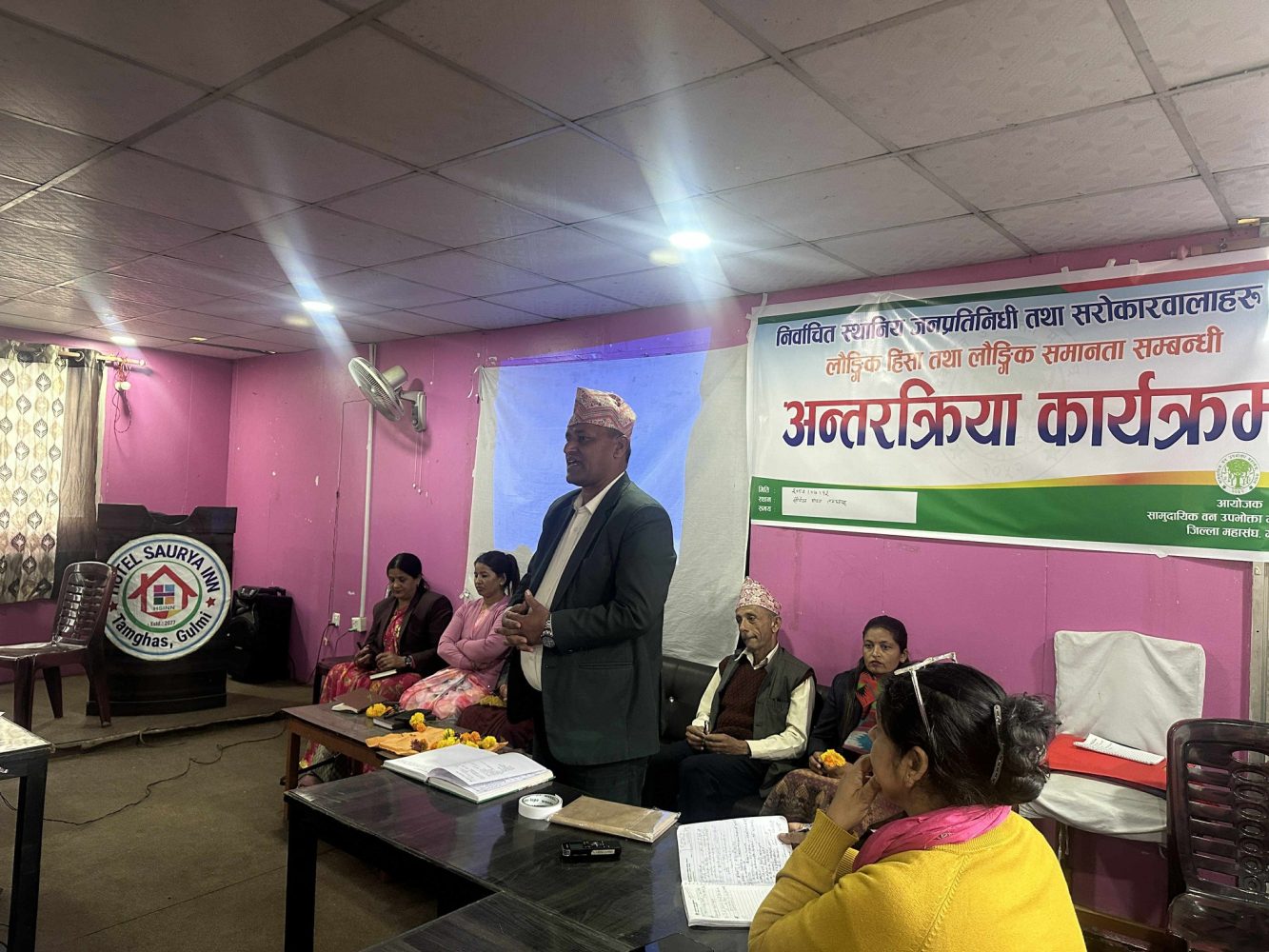 - प्राकृतिक श्रोतमा लैङ्गिक समानता र सामाजिक समावेशीकरण सम्बन्धी अन्तर्कृया